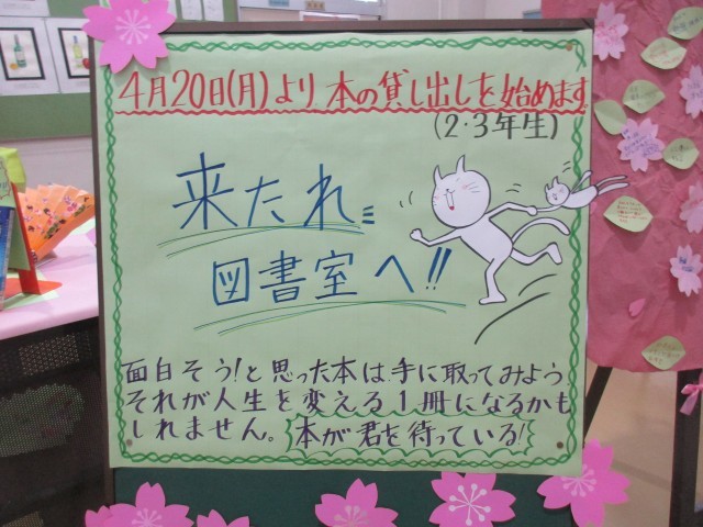 職員室前の様子 公開日 2026/04/16 更新日 2026/04/16 お知らせ 職員室前は、いつも季節を感じる飾り付けがしてあります。毎回、楽しみですね!図書室にも、ぜひ足を運んでください。人生を変える本に出会えるかもしれません!