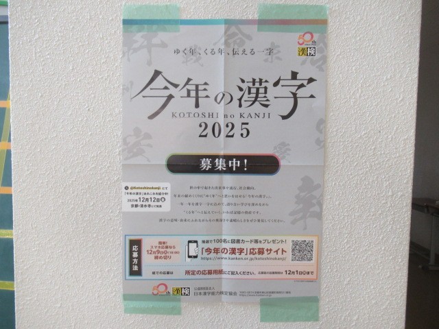 図書室前に『今年の漢字2025』の応募ポスターが掲示されました。