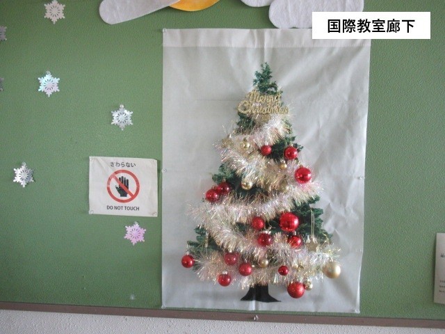 校舎内にも、クリスマスの飾り付けが目に入ります。