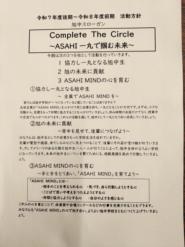 生徒会を中心に全員で、これからの旭中を作っていきましょう!