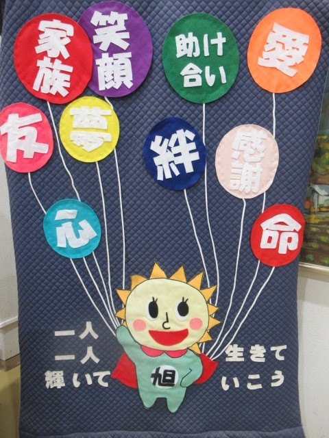 旭中の職員室前に飾ってあるこのキルト。