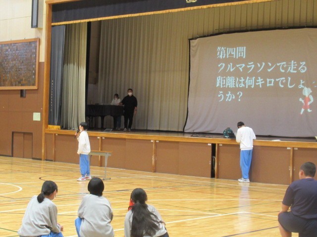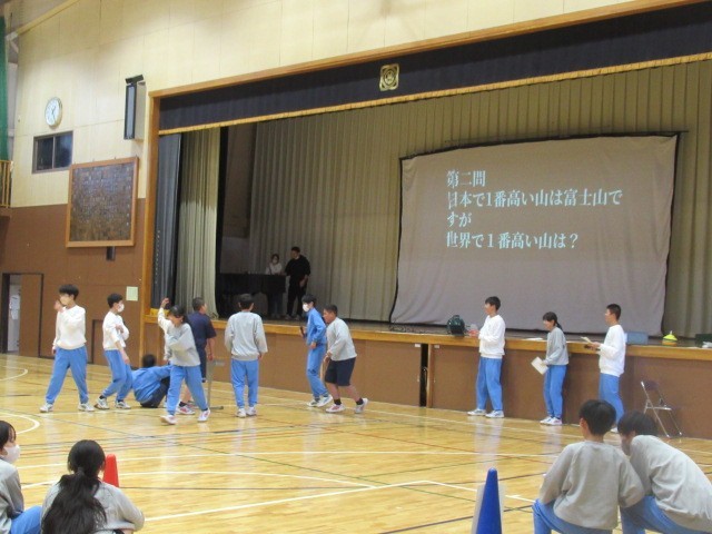 今日の昼休みに、生徒会企画の『旭中クイズ王決定戦』が体育館で行われました。