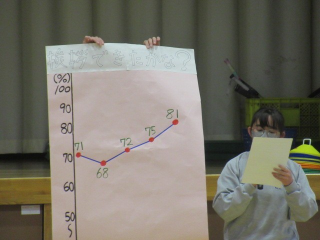 写真は、生徒会本部による月2回のあいさつ運動です。