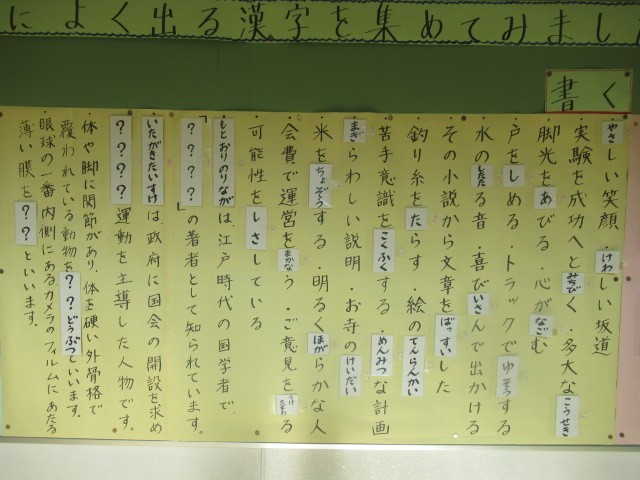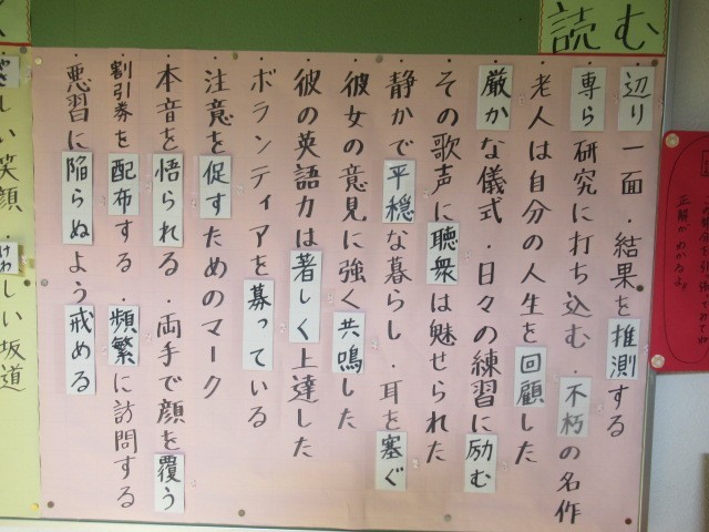 そこには、高校入試でよく出題される漢字の読み書きがクイズ形式で書かれています(裏返すと答えが出てくるね)。