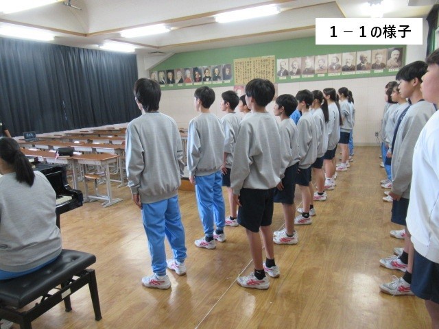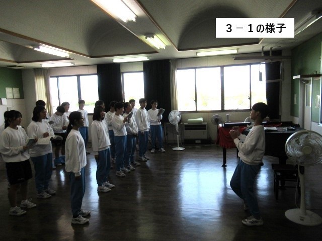 写真は今日の昼休みに音楽室&体育館で練習をした3年生の様子です。
