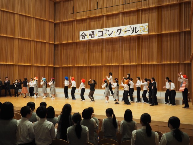 合唱コンクールでは、各クラスの合唱の他にも、英語弁論や生徒会のお楽しみ企画などの発表がありました。