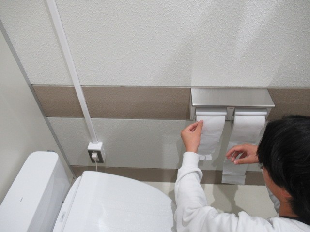 また、美化委員会は、長い間工事をしていたトイレが、新しくなり来週から使用できるようになるので、その準備として、トイレットペーパー等の設置を行いました。
