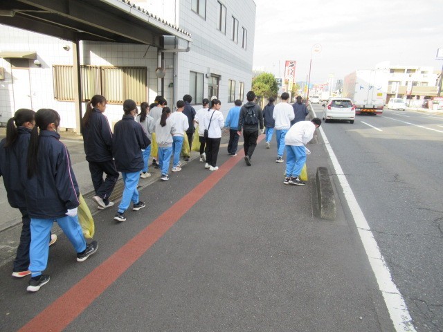 生徒と一緒にゴミを拾いながら、「皆さんのおかげで地域がきれいになりますよ」と声をかけてくださる姿は、生徒たちにとって大きな励みになりました。