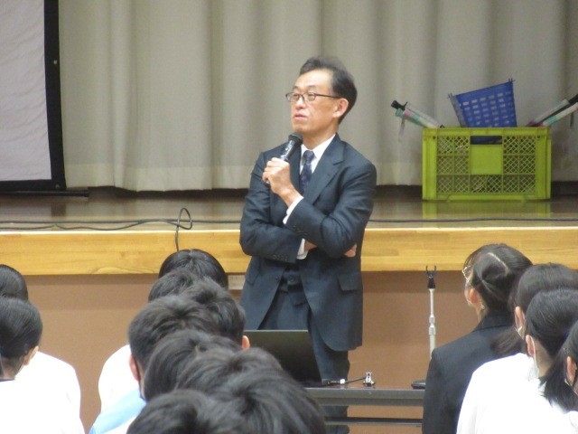 『ホルモンとあなた』という聞き慣れないタイトルでしたが、橋本博士の専門分野を人権と絡めてお話ししていただき、生徒も職員も興味を持って聞きました。