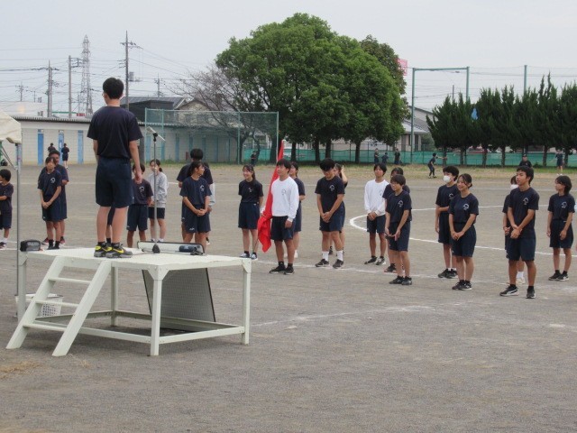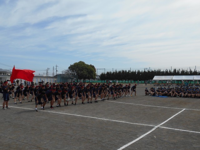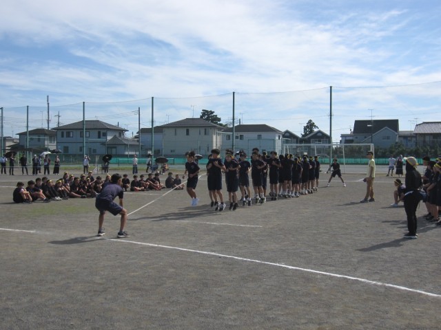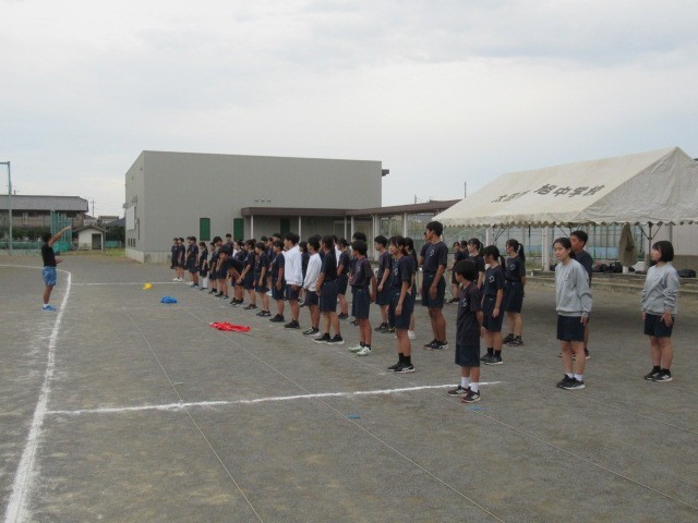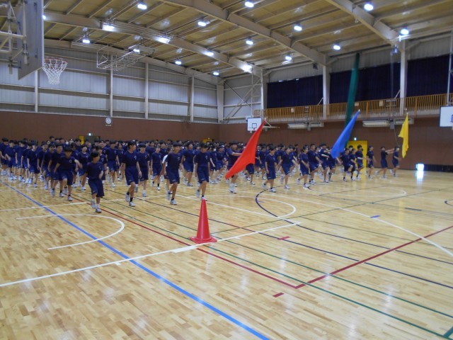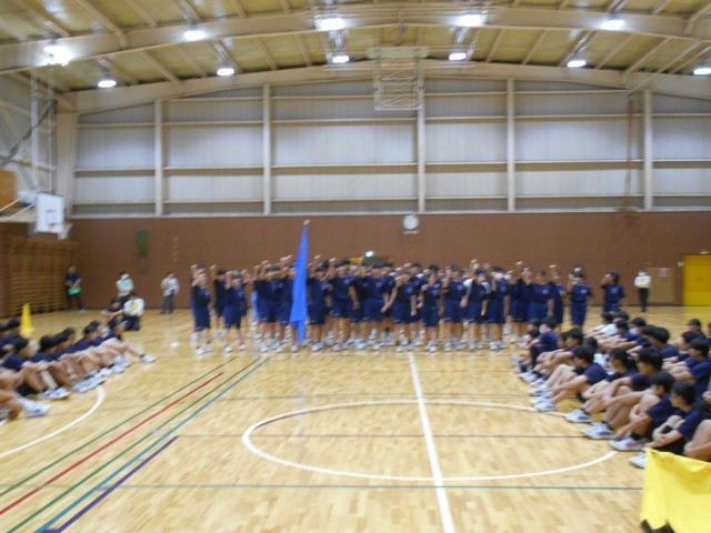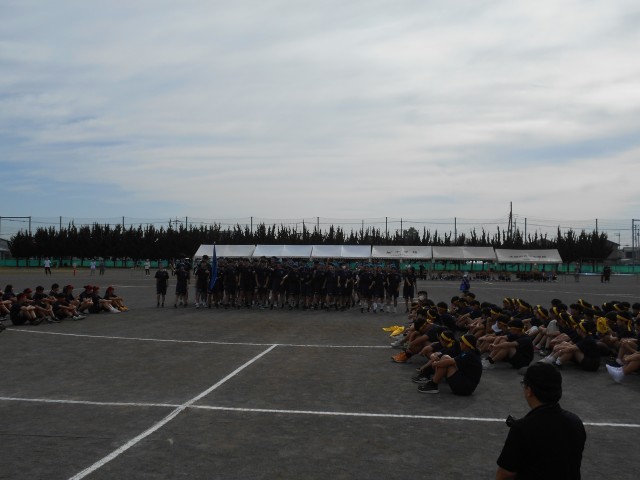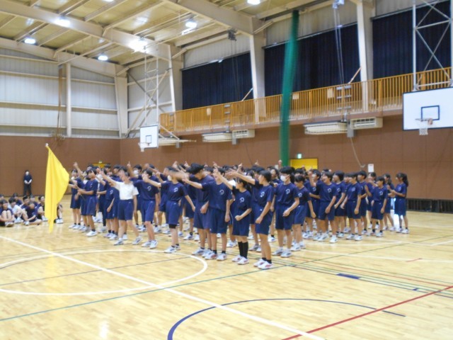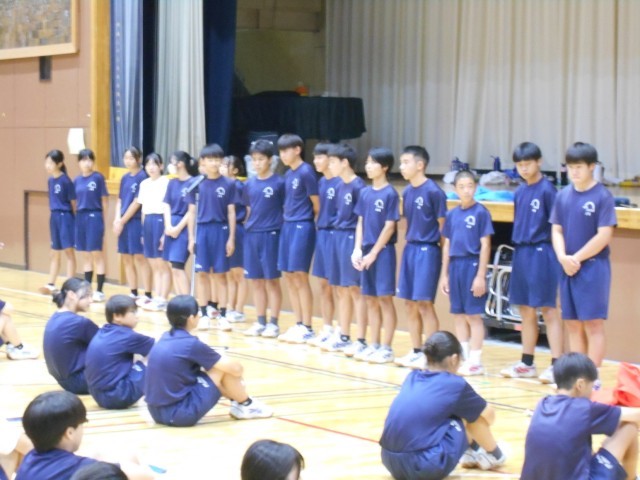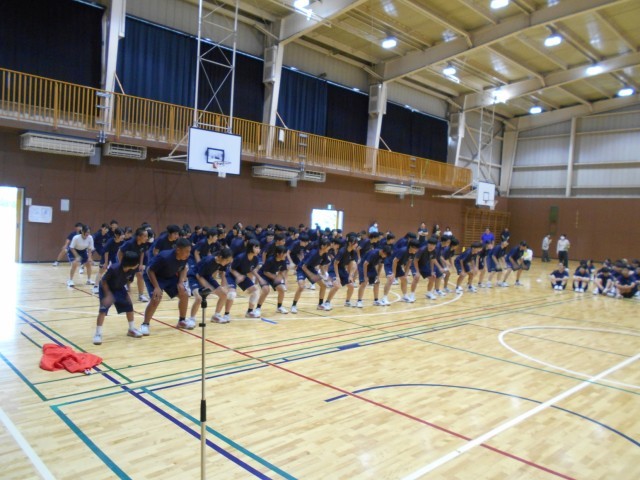 雨が降っていなければ、校庭で行う予定だった体育祭の予行練習と10/4(土)に行われる駅伝大会の壮行会を4校時に体育館で行いました。