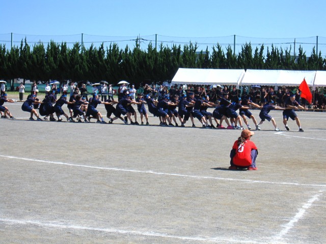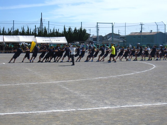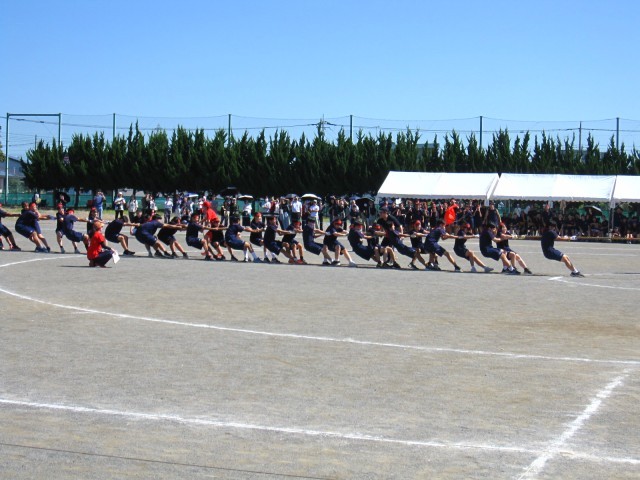男女混合、3学年合同で力を合わせて綱を引きます!