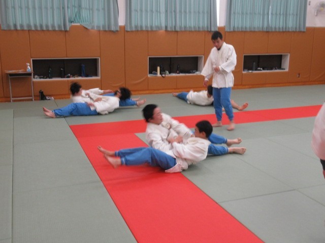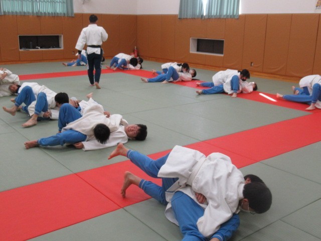 袈裟固(けさがため)や横四方固(よこしほうがため)の練習に取り組んでいました。
