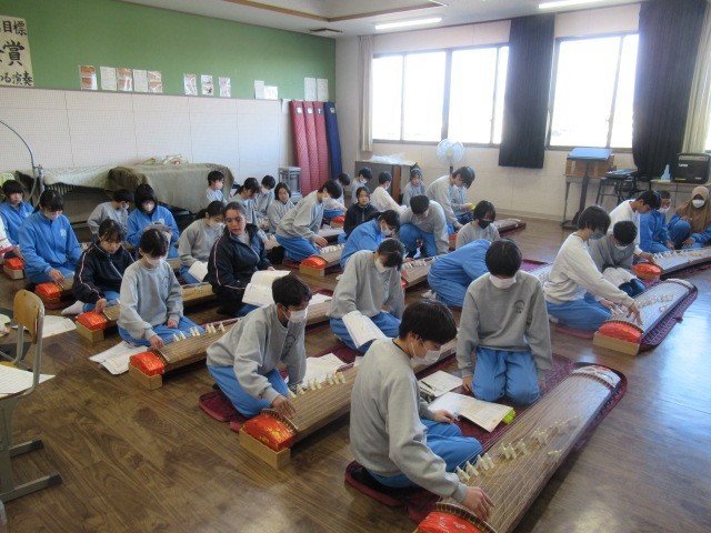 中学校の音楽科では、学習指導要領に基づき、日本の伝統音楽や和楽器に親しむ学習が位置付けられています。