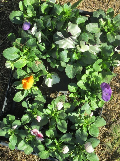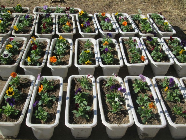 3月の卒業式に向けて、式場の飾るプランターの準備が始まりました。