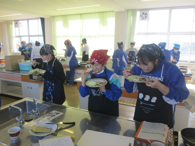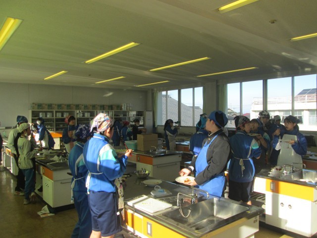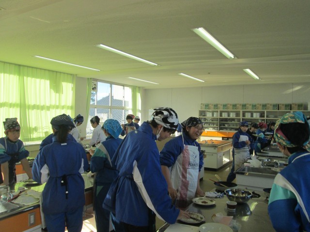 1年生家庭科の授業で、調理実習を行いました。