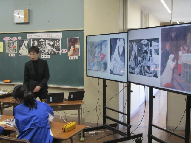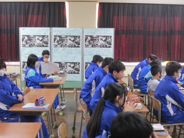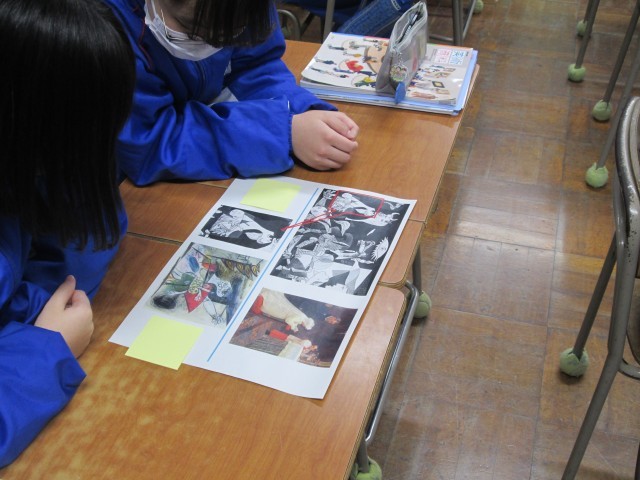 「ゲルニカ完成作品」と「ゲルニカ習作」や「写実的な絵」を比較鑑賞し、なぜピカソはその表現をしたのか
