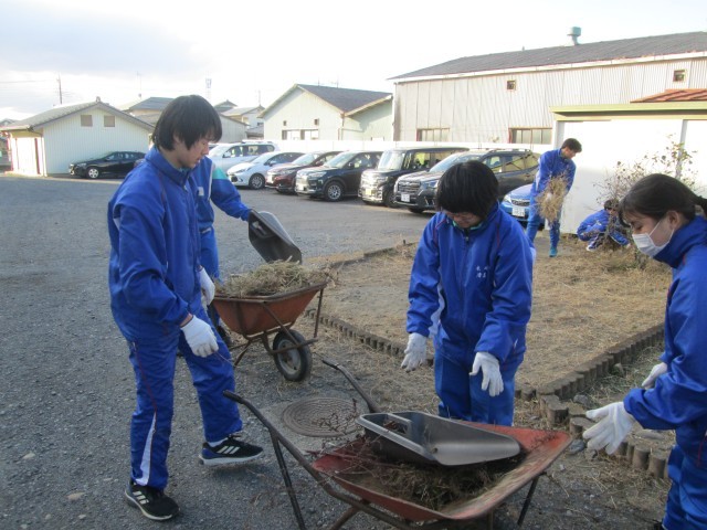 花壇整備と古紙回収の様子です。