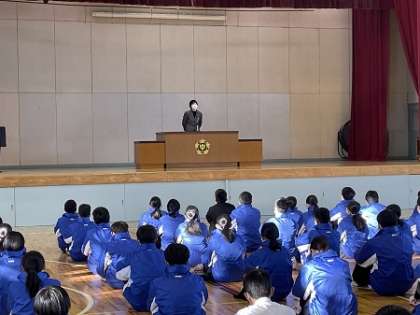 校長先生からは、「負けない心でまっすぐに進んでいくこと」、「人間力を高めていくこと」を意識して、何事にもトライして一生懸命がんばる木崎中集団としてがんばるようお話がありました。