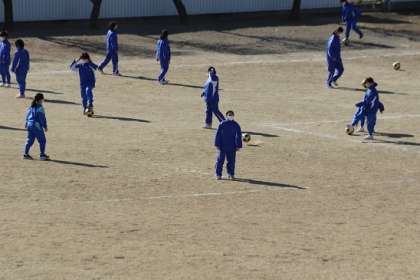 校庭ではサッカーに取り組んでいます。
