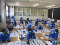 12月15日(月)1年C組での国語の授業です。書き初め練習をしていました。本番は...
