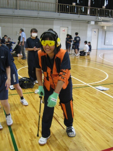 特に「高齢者体験」では、“目や耳が不自由になる体験”、“腕や腰が伸ばせない体験”、“歩きにくい体験”などをしました。