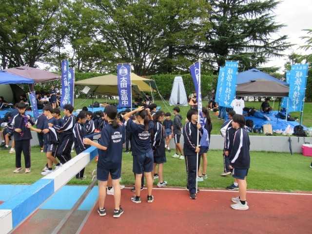 競技場では、出場する選手や応援する選手、先生方が、“いつも通り”の和やかな雰囲気で競技開始に向けて準備していました。そこには、学年の違いや生徒と先生の立場の違いなどなく、互いに気持ちよく話せる関係がありました。