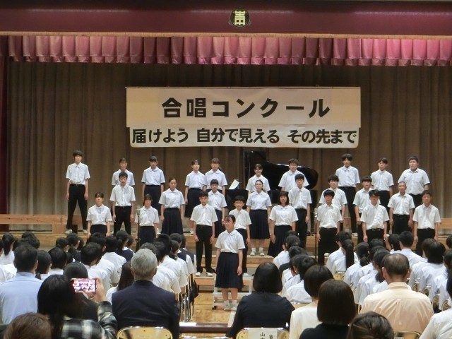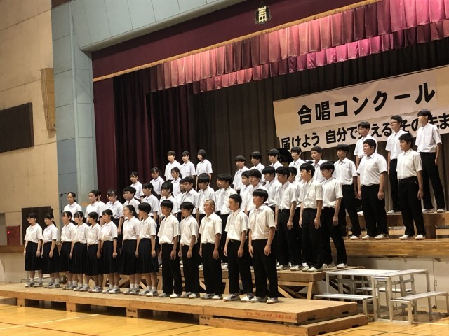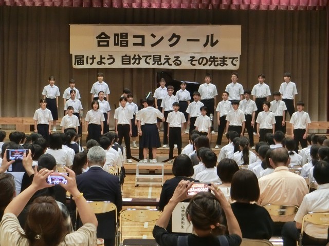 本校体育館で行われたコンクールの2年生の部では、昨年度の経験を生かし、1組、2組がそれぞれの持ち味を発揮して、さらにバージョンアップした歌声を響かせてくれました。