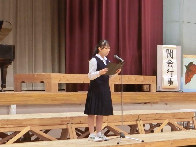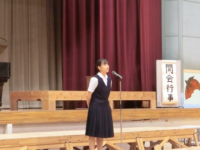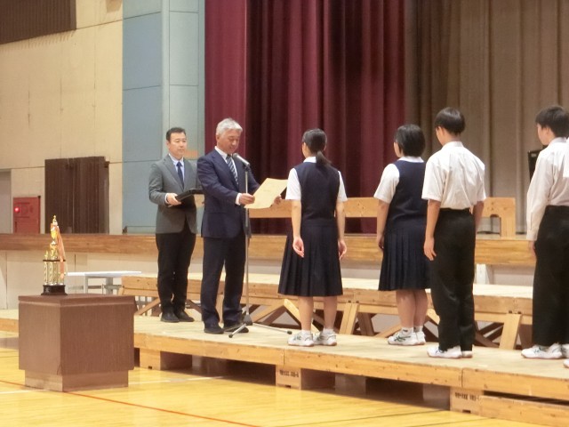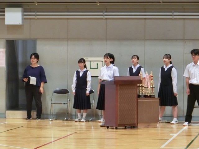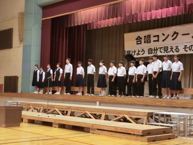 コンクールの中では、今年のNコン参加者の合唱、市少年の主張学校代表者(3年 斉藤美咲さん)の発表、市英語スピーチコンテスト代表者(2年 村山こはるさん)の発表も行われました。特に、Nコン参加者の合唱では、本校職員や声楽家の応援も加わり、合唱コンクールを盛り上げてくれました。(今年度も特別審査員として山本崇美先生をお招きし、審査に加え、講評と助言をいただきました。)