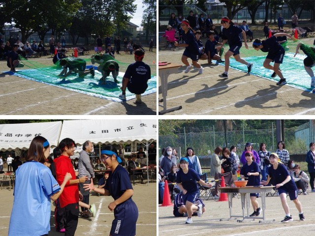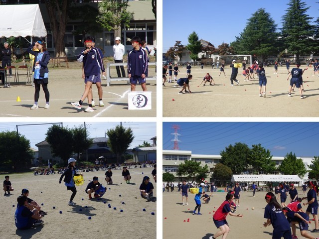 生徒は、100m走やリレーでは力強い走りを、障害物競走や生徒会種目「玉入れ」では仲間と楽しそうに活動する様子を見せてくれました。また、チームジャンプや綱引きでは、互いに声をかけ合いながらクラスの団結力を発揮して、仲間と喜びを分かち合う様子を見せてくれました。