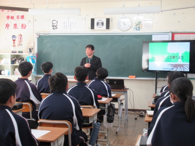 講師として畠山先生(県教委スクールカウンセラースーパーバイザー)と大谷先生(本校スクールカウンセラー)をお招きし、人間誰しもが抱える嫌な気持ちや悩みも「根っこ」として大切であり、心を支えているという授業をしていただきました。