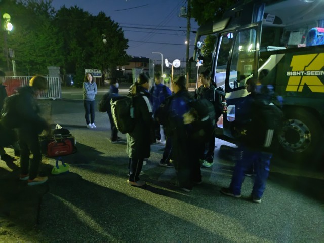 (早い時間の出発に間に合うようにお子様を送り出してくれたり、学校で選手を見送りしてくれた保護者の皆様、ありがとうございました)