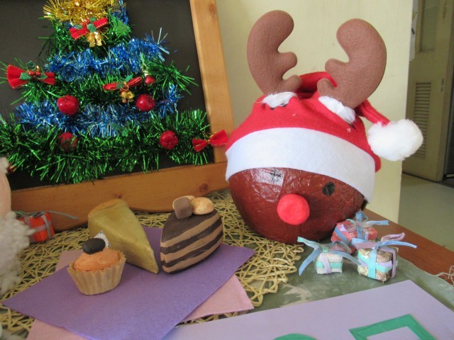 今回のテーマ“クリスマス”を、サンタとトナカイ、ケーキや雪だるま、そして、プレゼントで表現してくれました。