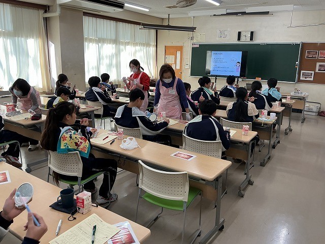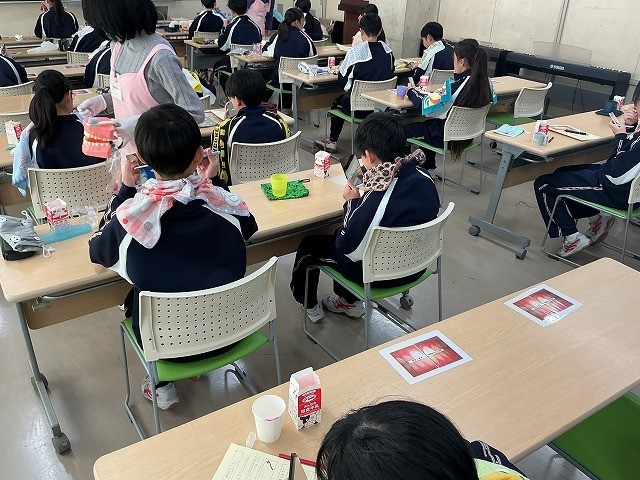 歯科衛生士さんを講師にお招きし、歯肉炎の症状の進み方や予防方法、また、基本的なブラッシング方法等についてご指導いただきました。
