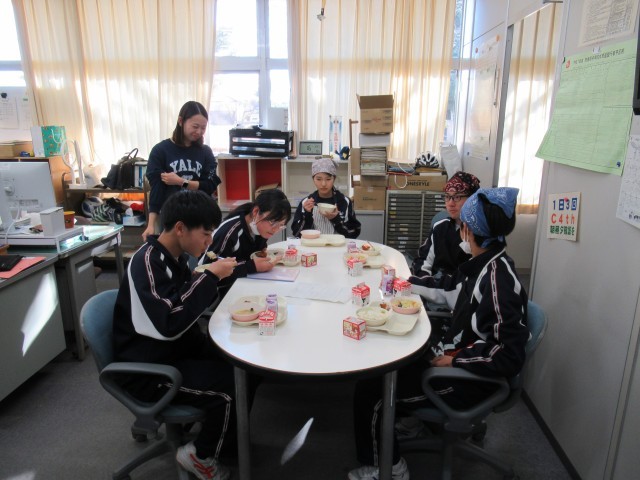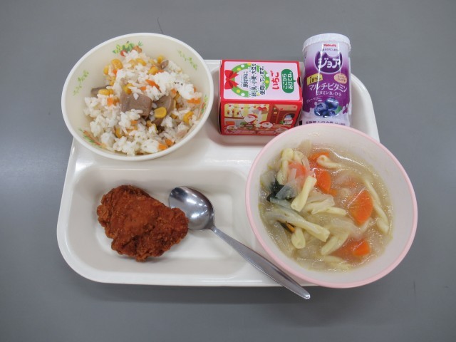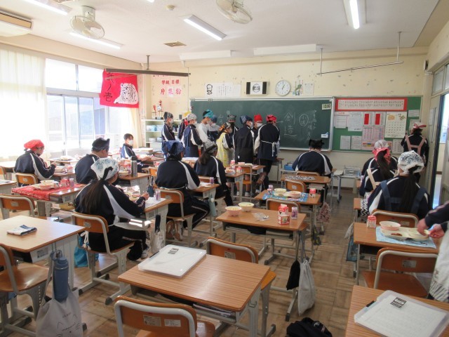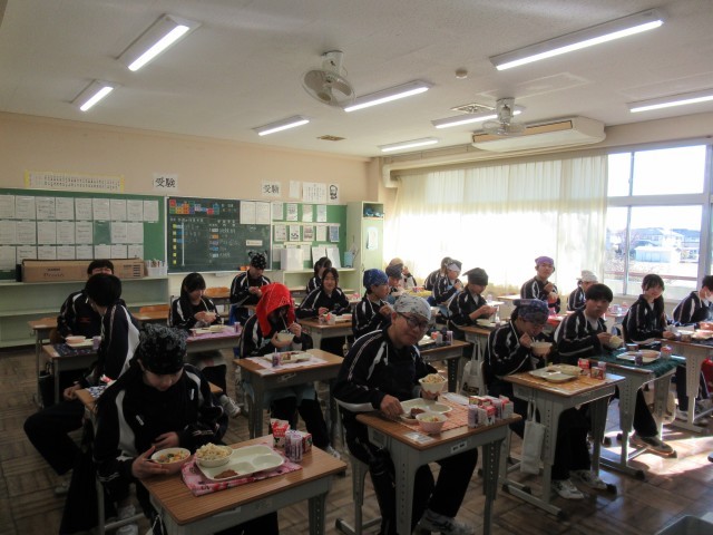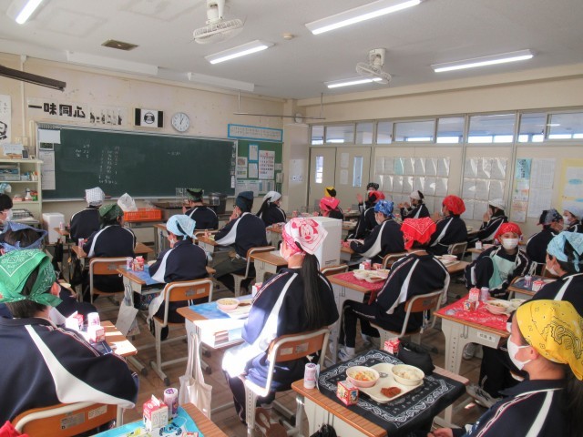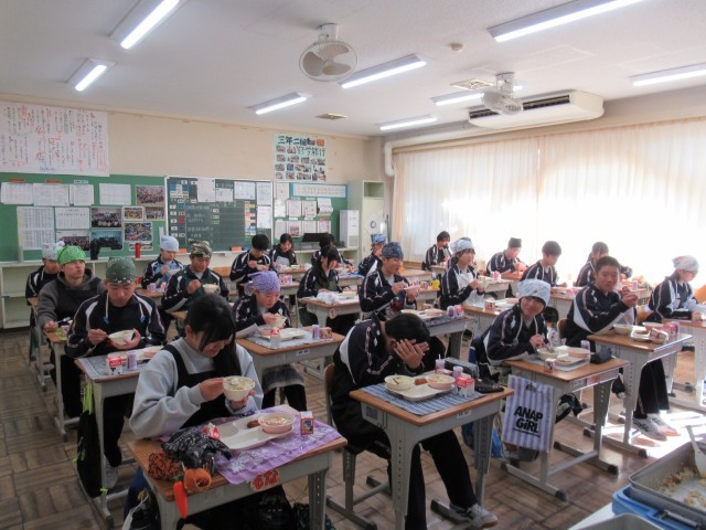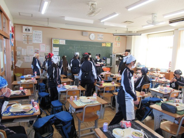 いつもどおり、楽しそうに給食の準備をしたり、おいしそうに食べたりしていました。