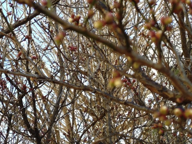 生品中の梅が蕾(つぼみ)を膨らませてきました(1/4)