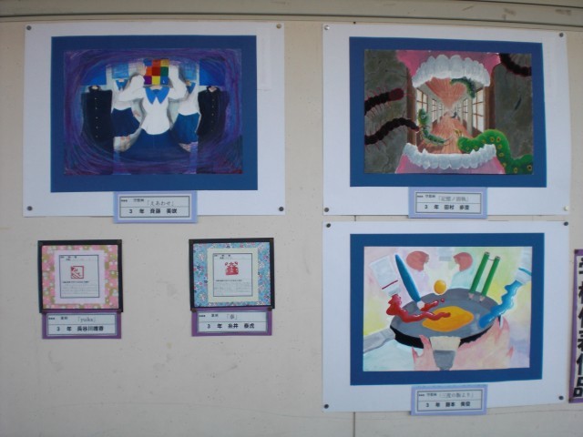 1年から3年生の生徒が、時間をかけて、ていねいに取り組んで作り上げた作品だと考えると、展示された作品から受ける感動がより大きくなります。