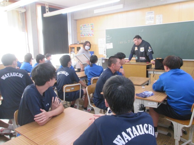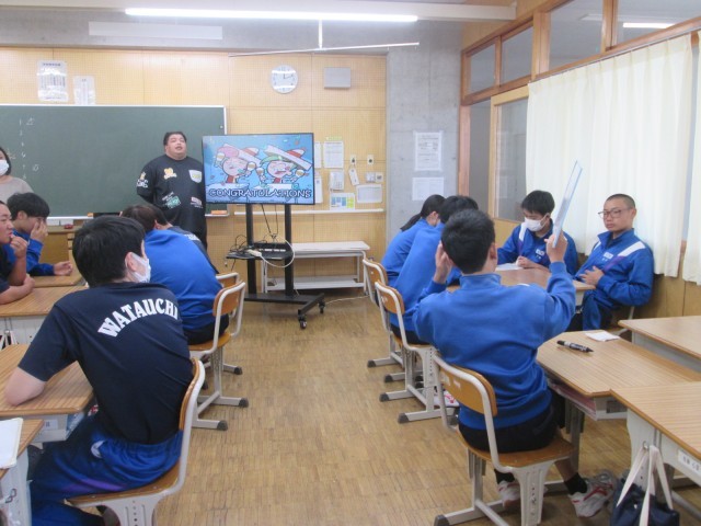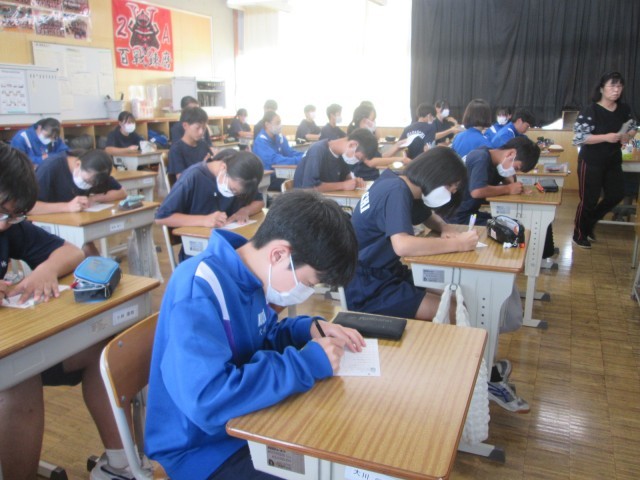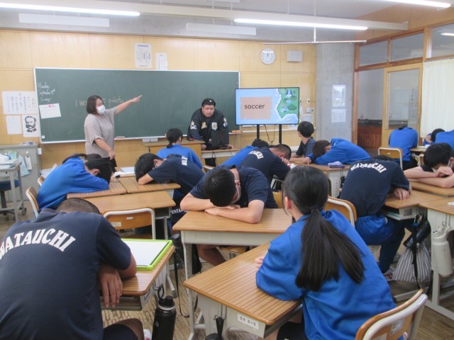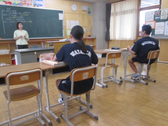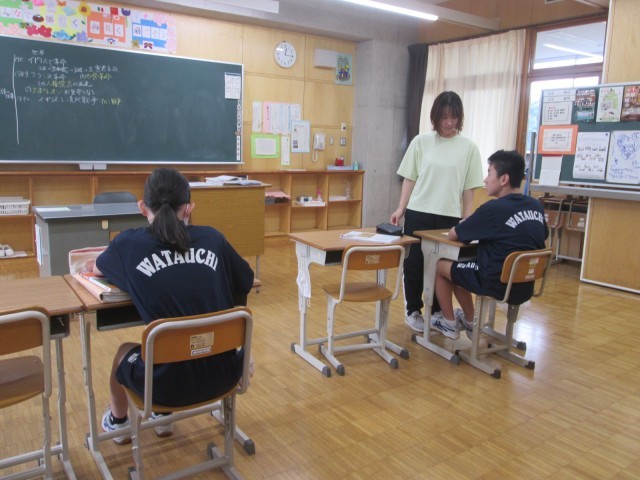 英語では、単語を並び替えて文章を作るクイズをしていました。