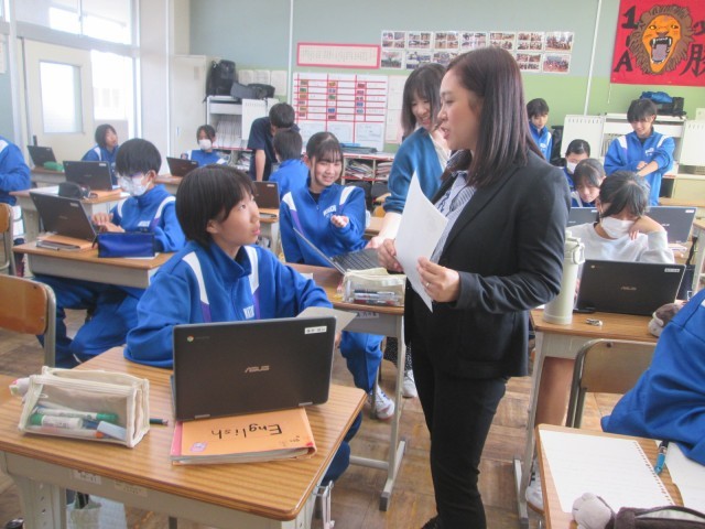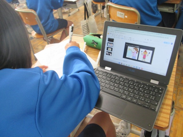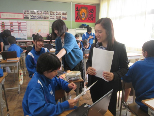 綿打中学校の先生について、英語で紹介するための準備をしていました。