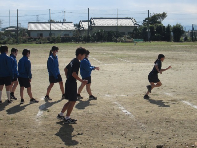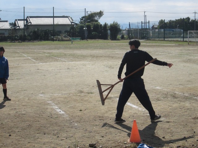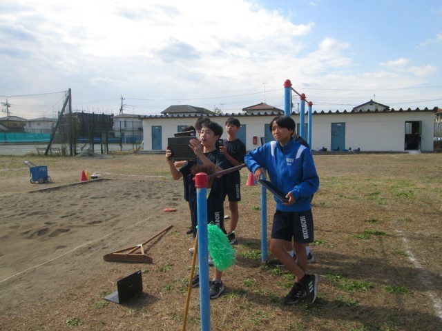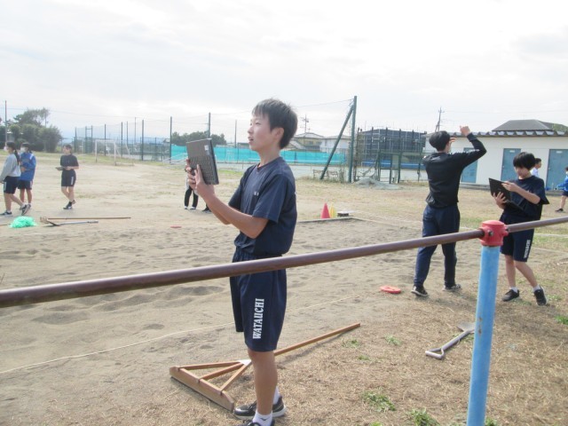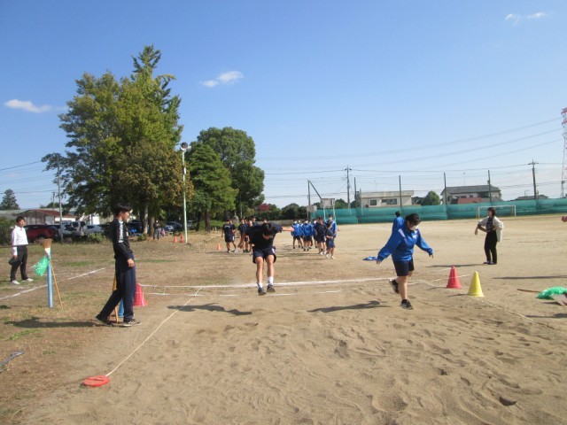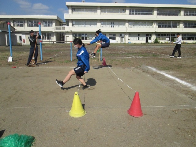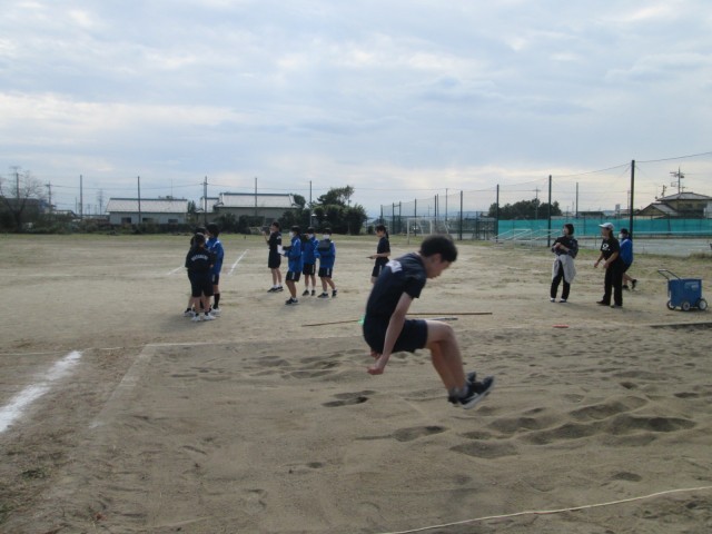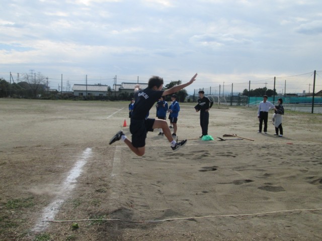 今日は、走り幅跳びの空中姿勢をどうすればよいか、工夫して跳んでいました。