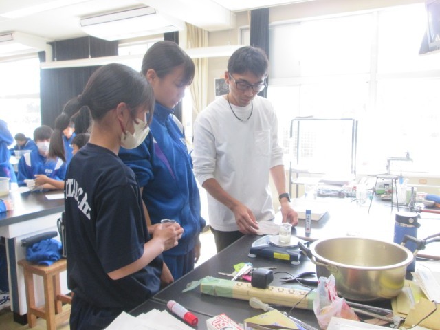 理科では、液体から固体に変わったとき質量はどうなるのか、ロウを使って実験していました。