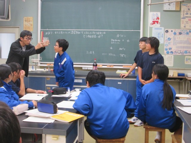 1年生は、エタノールと水の混合物の沸点について予想を立てていました。
