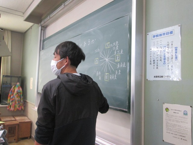 2年生は、方位や気象の学習をしていました。