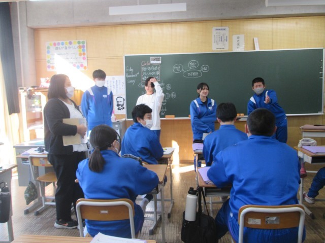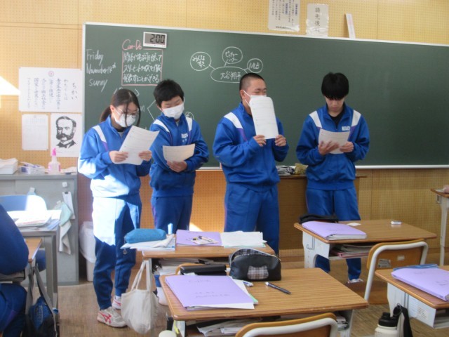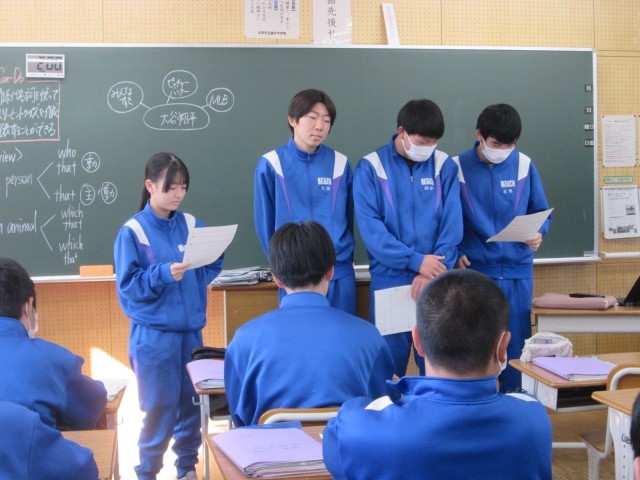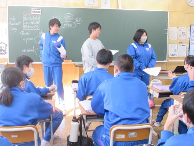 関係代名詞を使って3ヒントクイズを作成し、班ごとに発表しました。