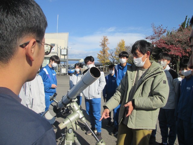 理科では、望遠鏡を使って、太陽の黒点を観察していました。