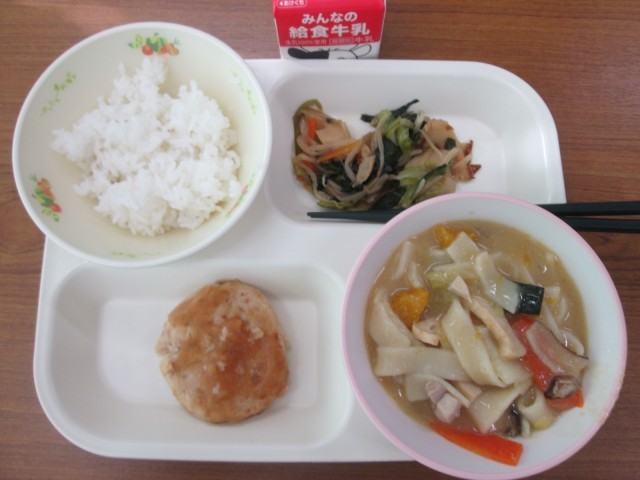 今日の給食はほうとう汁 公開日 2025/12/16 更新日 2025/12/16 お知らせ 今日の献立は、ほうとう汁・豆腐ハンバーグのおろしソースがけ・小松菜の煮浸し・ご飯・牛乳でした。ほうとう汁は、太麺がもっちりしていておいしかったですね。豆腐ハンバーグは、おろしソースがいい味でした。今日も完食です。ごちそうさまでした!