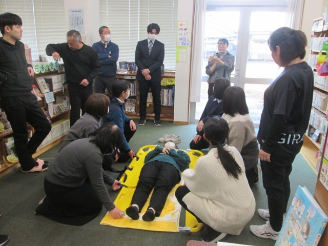 月曜日の放課後、先生たちは、担架の使い方研修を行いました。