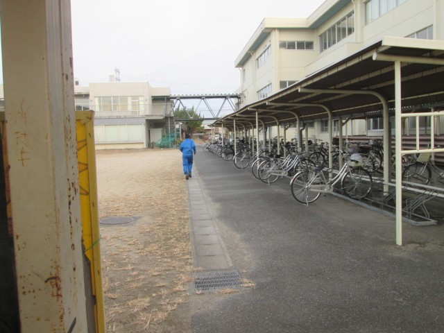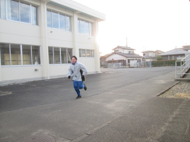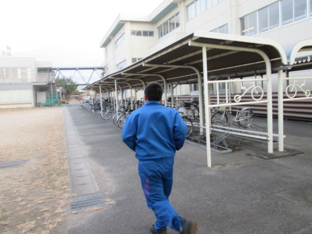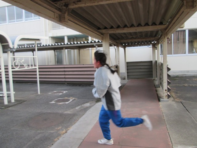 強風の中、野球部とサッカー部の生徒が走り込みをしていました。
