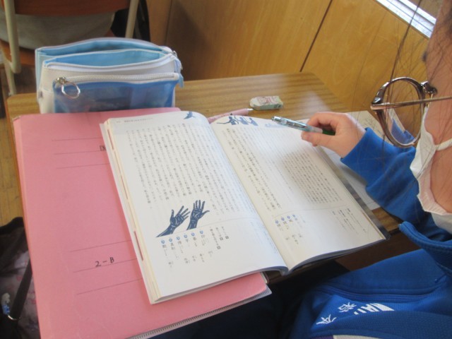 音楽では、「荒城の月」を朗読してから、気持ちを込めて歌う練習をしていました。