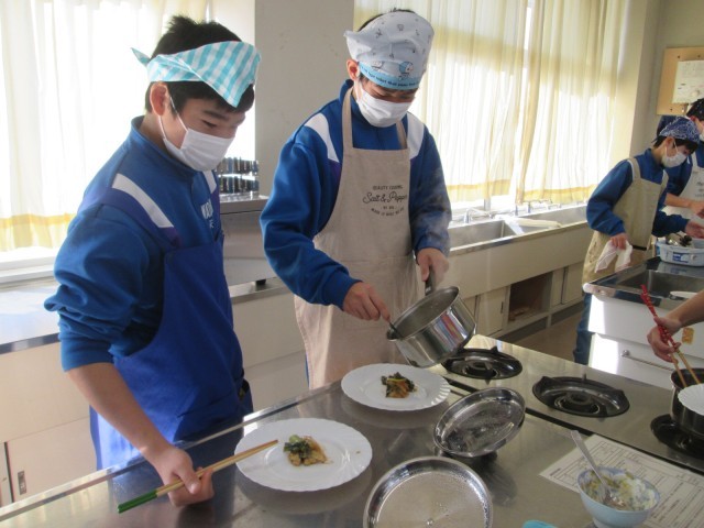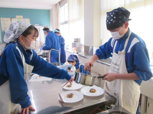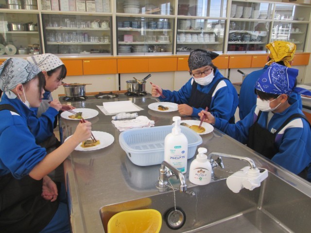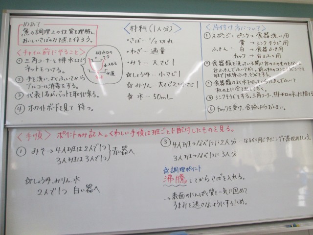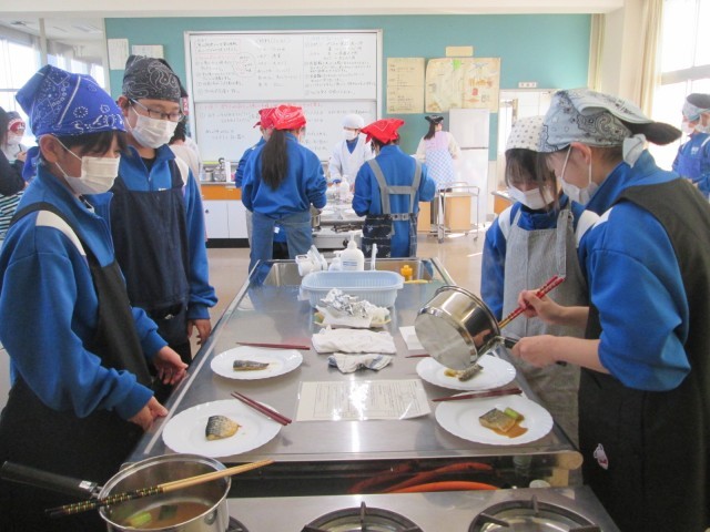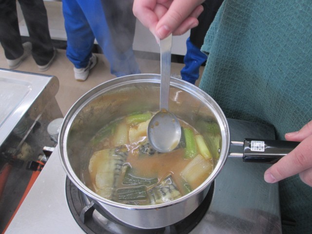 1年生が、さばのみそ煮に挑戦していました。