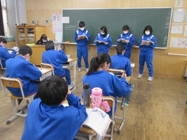 国語では、班ごとに「走れメロス」の朗読をしていました。